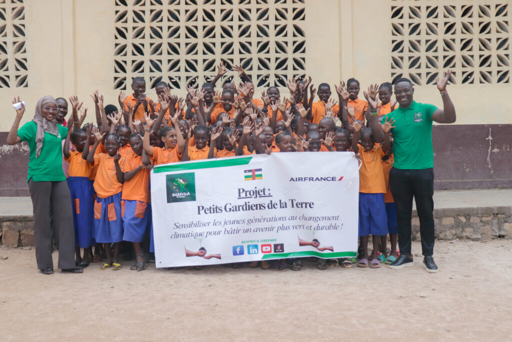 Chez Béafrica Greener, nous croyons que l’éducation environnementale doit commencer dès le plus jeune âge. Le programme Petits Gardiens de la Terre est conçu pour sensibiliser les enfants et les adolescents à la protection de la nature et au rôle qu’ils peuvent jouer dans la lutte contre le changement climatique.